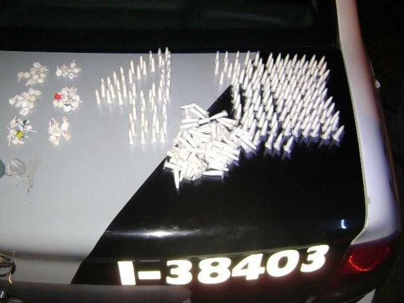 Os soldados da PM Eliton e Saggiorato fizeram uma busca pelo local e encontraram, embaixo de tijolos, uma sacola plástica contendo 24 invólucros de maconha e 8 pedras de crack. No terreno ao lado, sob uma tábua, foram encontradas 61 pedras de crack 242 empendorfes com cocaína.