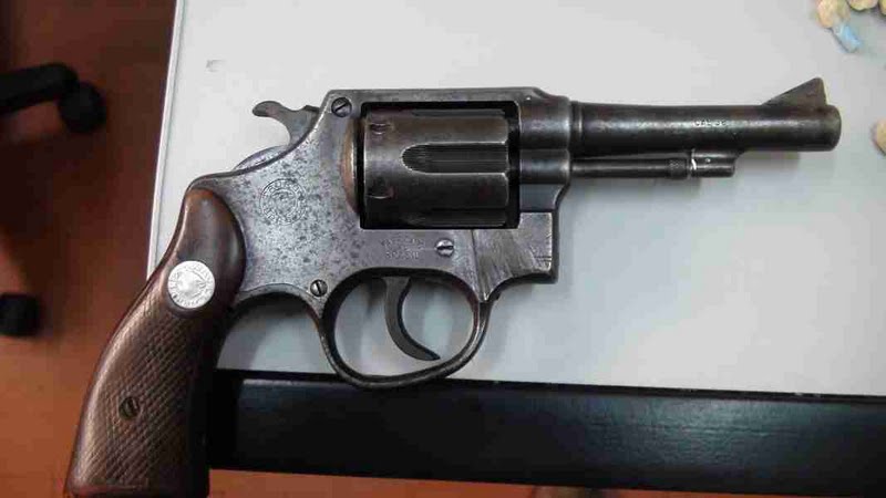 O indiciado indicou aos policiais o local onde estava o revólver calibre 34 de 4 polegadas, que foi encontrado com 3 munições intactas e numeração raspada.