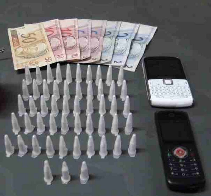 Durante a abordagem os policiais militares da ROCAM (Rondas Ostensivas com Apoio de Motocicletas) encontraram com L.O.,19 anos, ajudante de serralheria, 30 eppendorfs aparentando conter cocaína; e com I.S., 20 anos, servente de pedreiro, 23 eppendorfs, também aparentando conter cocaína, e uma certa quantia em dinheiro.