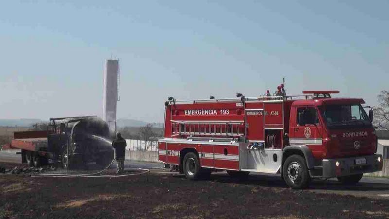 O Corpo de Bombeiros foi acionado para controlar as chamas, que tomaram conta da cabine destruindo-a completamente.