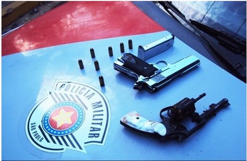 As armas apreendidas foram um revólver calibre 38 e outra pistola calibre 45. Outras armas poderiam ter sido utilizadas neste roubo, mas não forma localizadas. “A Polícia Civil, através de perícia vai investigar a origem destas armas. “Essa arma preocupa a polícia porque pode perfurar uma viatura e ferir policiais. O ferimento provocado por ela é tão grande que é difícil uma pessoa sobreviver”, finalizou o tenente Miranda.