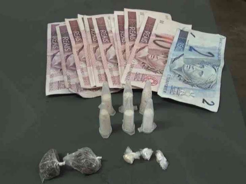 Durante a abordagem a PM recebeu informações pelo 190 que havia droga escondida próxima dos adolescentes. Em vistoria em meio a entulhos os policiais encontraram 6 eppendorfs aparentando ser cocaína, 2 trouxinhas aparentando ser maconha, e 3 pedras de crack.