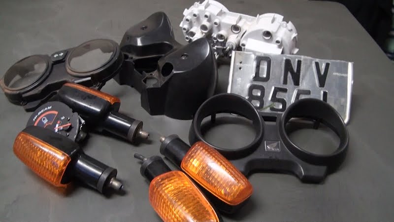 Foi verificado que a moto estava sem placa, com o número de chassi e motor raspado, numa sacola ao lado estava a placa, painel e algumas peças já desmontadas.