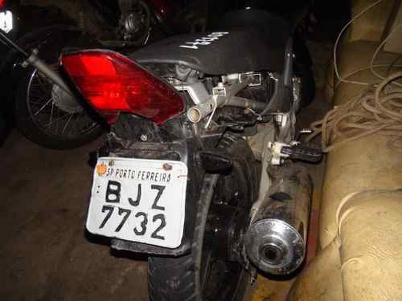 Os policiais verificaram que a moto estava com outra placa de identificação, amarrada com um arame, e que o chassi estava raspado. Questionado em relação a placa, o jovem disse que a mesma era de uma moto de seu tio que estava sem uso por problemas mecânicos.