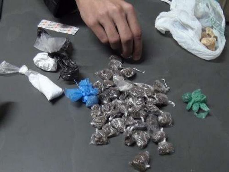 Ao verificar o que o homem, identificado como M.C.F.S.J. (19 anos, auxiliar de mecânico), havia jogado ao chão, os policiais encontraram cerca de quarenta e duas trouxinhas de maconha. Nas buscas realizadas na residência, encontraram em um rack uma bolsa contendo sete eppendorfs com cocaína, um tablete de maconha, quatro pedras de crack e uma certa quantia em dinheiro em notas diversas. No quarto da indiciada foi localizada mais duas trouxinhas de maconha e duas porções de um pó branco semelhante a cocaína.