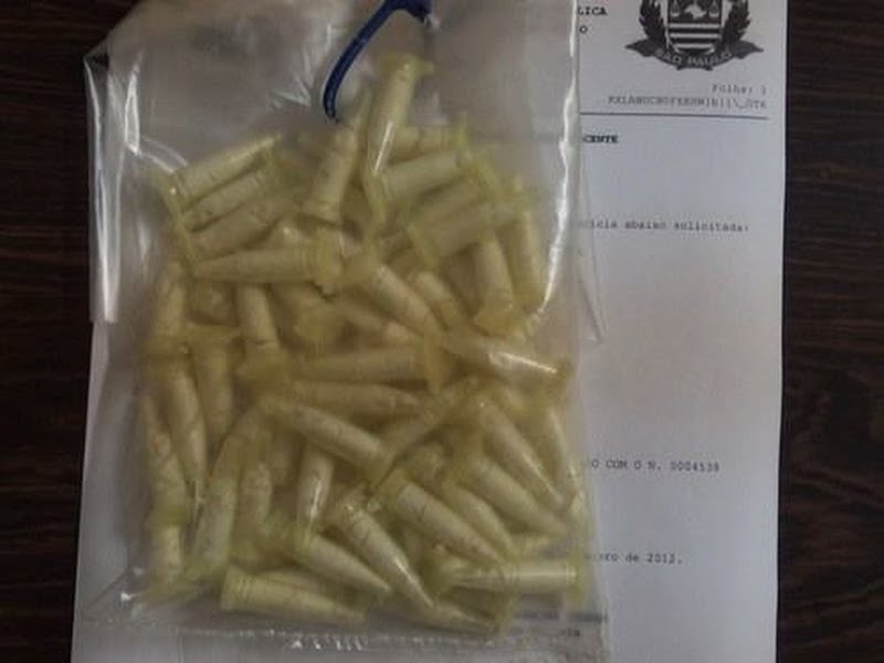 O policiais, a darem voz de abordagem ao indiciado, observaram que o mesmo dispensou um pacote transparente ao solo, com 60 eppendorfs contendo cocaína.