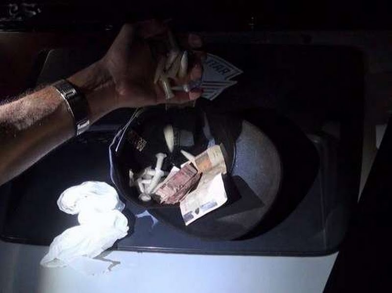 O condutor ao perceber que iria ser abordado, tentou evadir-se, mas foi acompanhado pela ROCAM, mas em determinado momento o passageiro jogou o saco plástico dentro do quintal de uma casa.