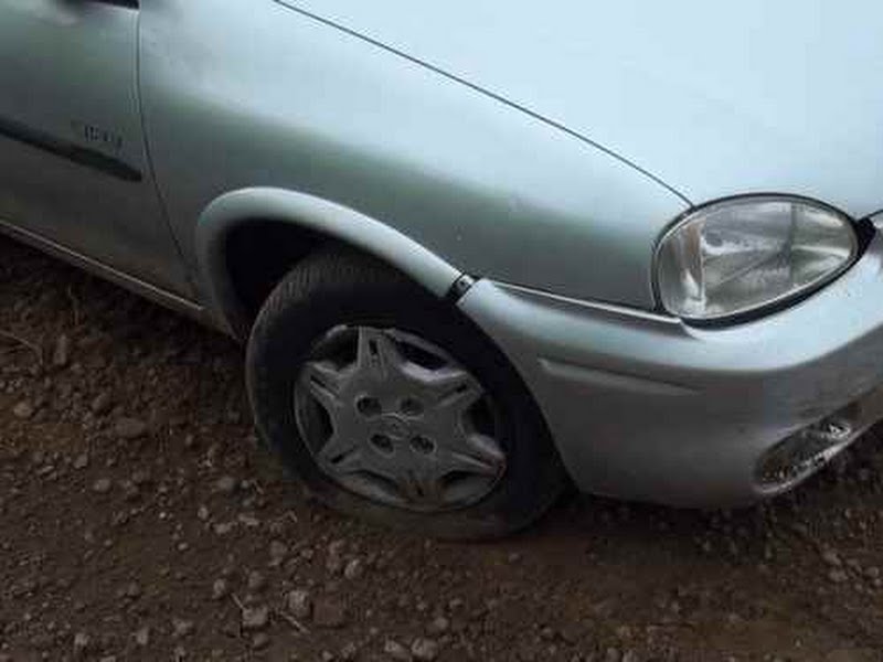O veículo estava com dois pneus estourados e a frente batida, indicando que os assaltantes perderam o controle do veículo vindo a chocar-se contra um barranco existente no local.