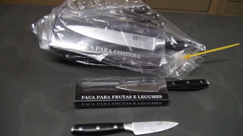 Com as características passadas aos policiais, estes iniciaram o patrulhamento procurando o autor, e o mesmo foi localizado no Jardim Santa Marta, e durante a abordagem foi localizado as duas facas que havia sido furtada.