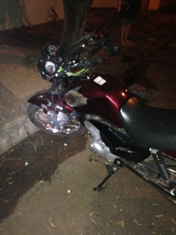 No local, os policiais verificaram que Paulo Alves Moreira, de 25 anos, veio a colidir sua moto, uma CG 150, contra uma árvore existente, como também arrancou uma lixeira fixada defronte uma residência.