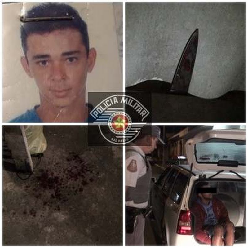 A faca utilizada no crime foi localizada pelos policias próximo a uma telha na garagem de uma casa, em frente ao local do fato.