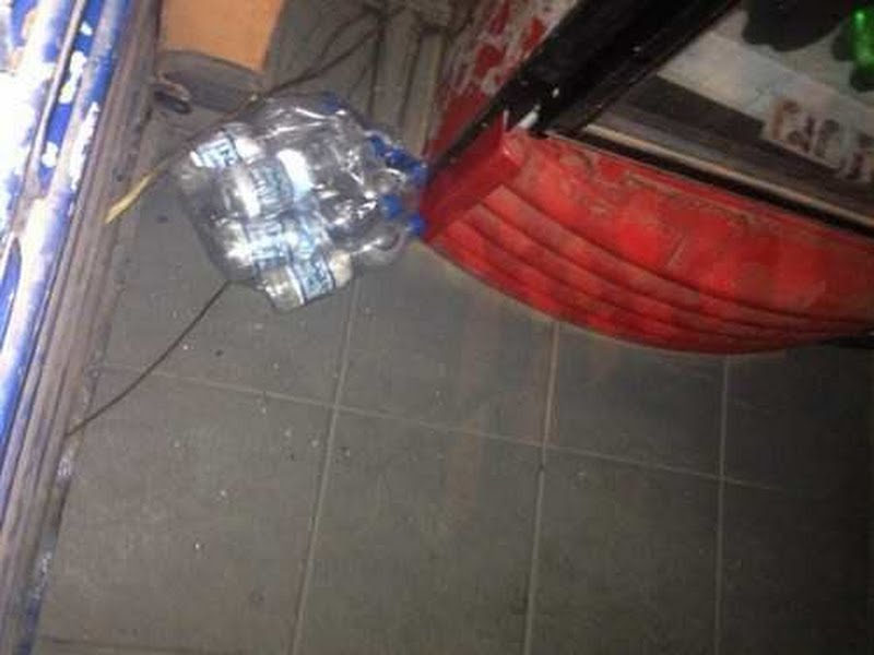 Os policias averiguaram a porta de um estabelecimento comercial próximo onde eles estavam e constataram que mesma havia sido danificada, por onde os indivíduos passavam o braço e pegavam produtos.