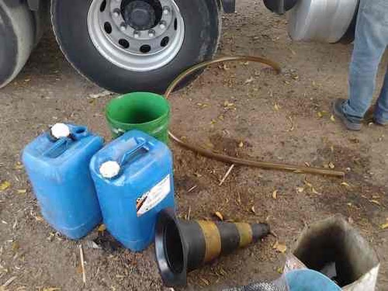 Ao lado do caminhão estavam mais dois veículos, sendo que em um deles estava no banco traseiro um galão idêntico aos outros que estavam cheios de combustível.