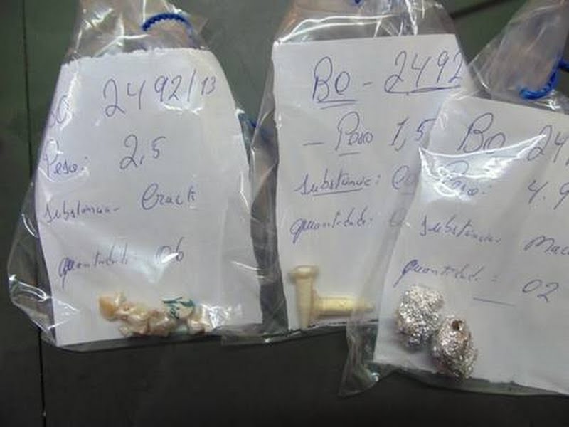 Segundo a GCM, os guardas abordaram um garoto de 15 anos de idade e com ele foram encontradas várias pedras de crack, pinos de cocaína e porções de maconha. Indagado a respeito, ele confessou que promove tráfico de entorpecentes pelas imediações.