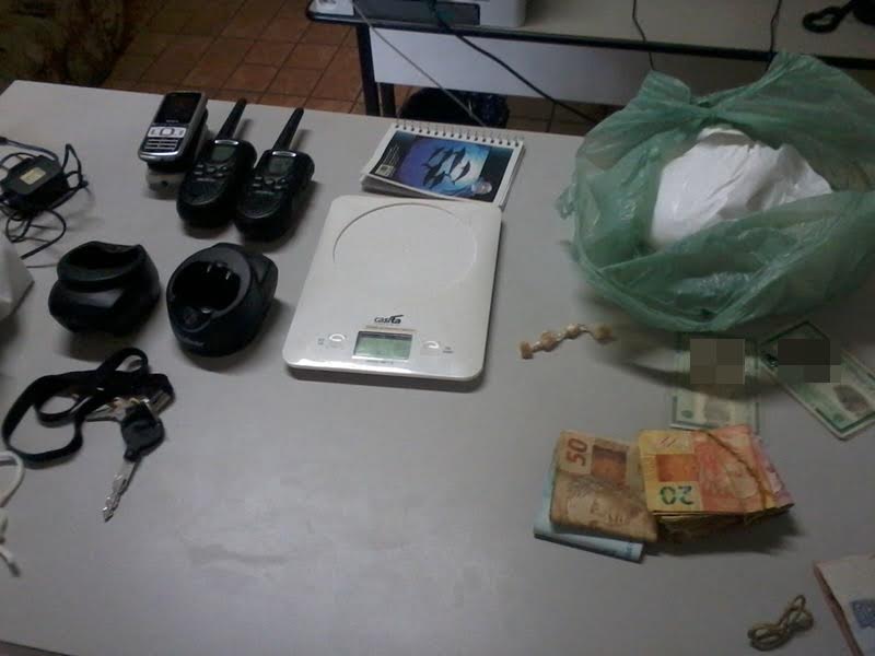 Os Policias realizaram também averiguação dentro da casa, localizando no guarda roupas um invólucro contendo em seu interior aproximadamente 780 gramas de um pó branco (onde foi apreendido para análise), uma balança de precisão, dois rádios comunicadores tipo HT, quatro pedras de crack e uma certa quantia em dinheiro, além de um caderno com várias anotações usando gírias do crime.