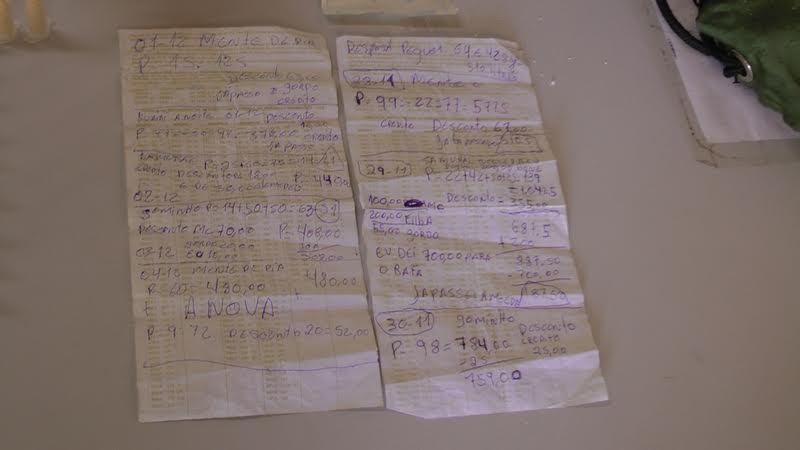 Também o que chamou a atenção dos policiais foi a localização de duas segundas vias de autuações de trânsito feitas pela PM, onde no verso constavam anotações da contabilidade do Tráfico de Drogas.