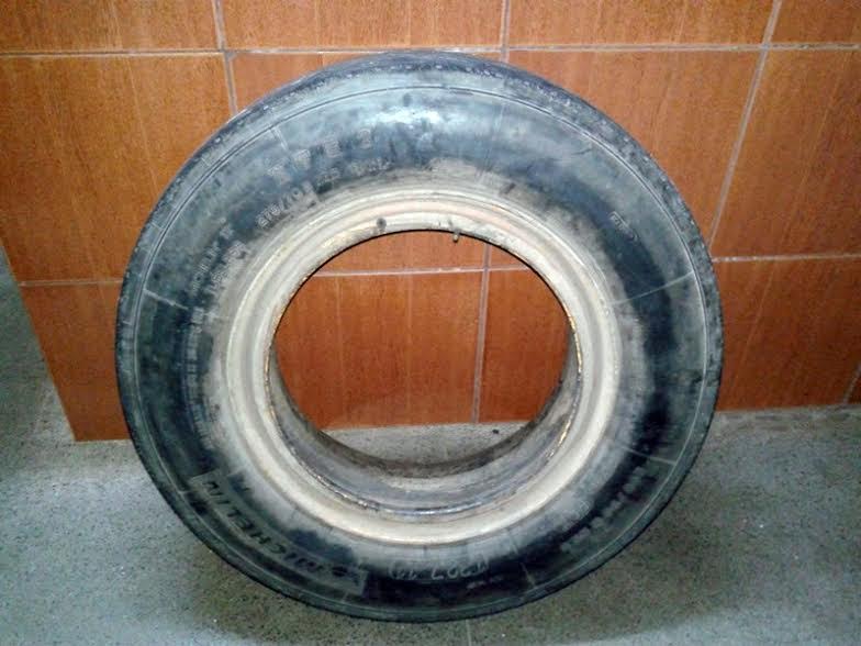 De posse destas informações, os policiais deslocaram-se até o local onde em vistoria no imóvel localizaram um pneu de caminhão com a roda da marca Michelin possivelmente produto de furto.