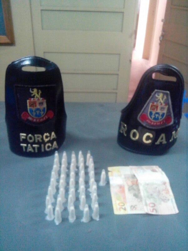 Policiais militares da força tática, sargento PM Silva e soldado PM Bibiano e Formenton, juntamente com os policiais da ROCAM, soldado PM Eliton e Pontes, durante patrulhamento pelo Bairro Cristo Redentor na praça Padre Conego Otaviano Pavesi, abordaram o menor infrator de 15 anos, morador no Jardim Águas Claras, que estava em atitude suspeita sendo localizado em seu bolso 15 eppendorfs com cocaína e mais uma certa quantia em dinheiro. Indagado, disse que a droga era para o seu consumo. O menor foi conduzido ao plantão policial, sendo elaborado o RDO da polícia civil para providências. Todo o entorpecente foi apreendido e o menor liberado para o padrasto que foi chamado a comparecer na delegacia.
