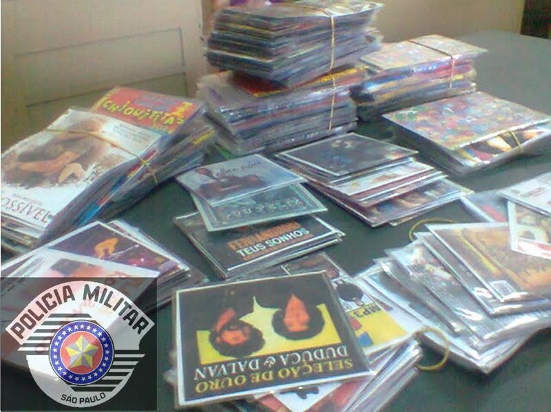 DVDs e CDs apreendidos pela PM de Porto Ferreira