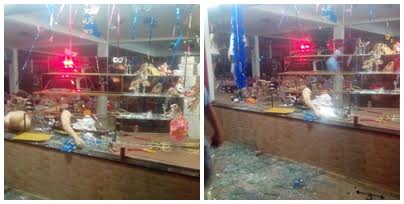 A apreensão ocorreu após os policiais serem acionados pelo Centro de Operações da PM com a informação de que estaria ocorrendo um saque no estabelecimento, onde indivíduos estariam apedrejando as vidraças e furtando várias mercadorias.
