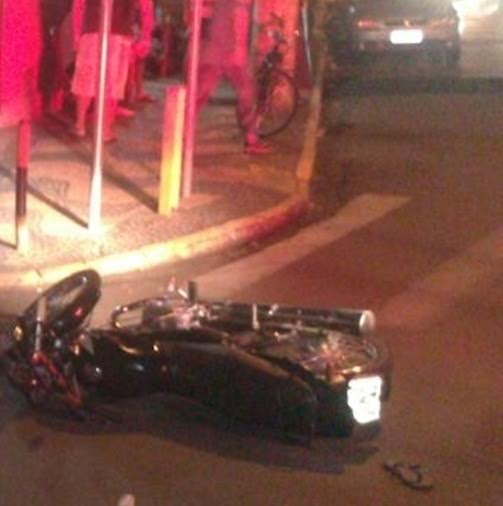 O acompanhamento ao veículo continuou até que o motociclista entrou na Av Dr. José Ferreira de Azambuja, onde na rotatória, por volta das 19 horas, o condutor perdeu o controle da moto vindo a bater em uma placa de sinalização, onde caíram.