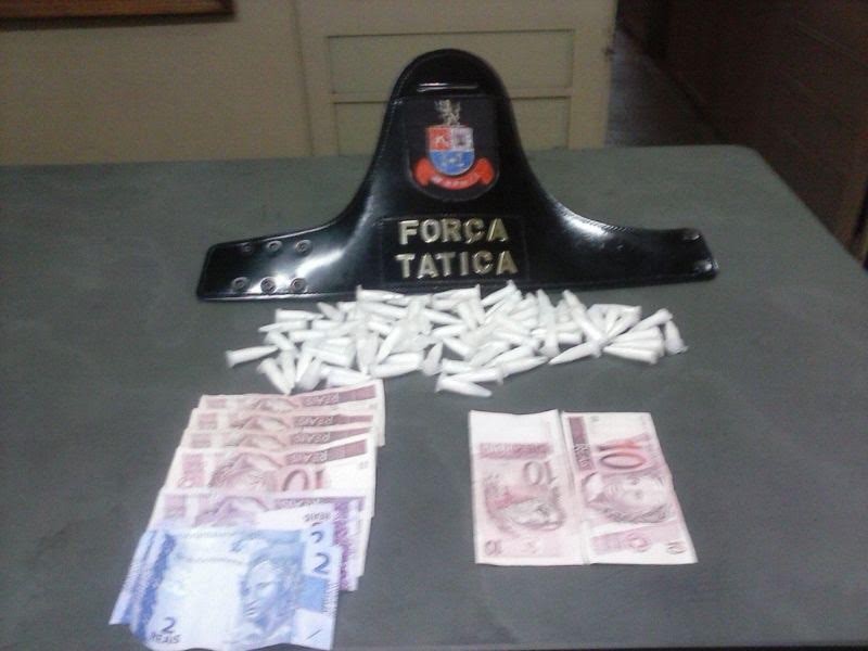 Com um deles foi localizado quatro eppendorfs com cocaína e mais oito eppendorfs no chão onde possivelmente ele teria jogando ao solo quando foi abordado. Com os outros dois menores foi localizado uma certa quantia em dinheiro.