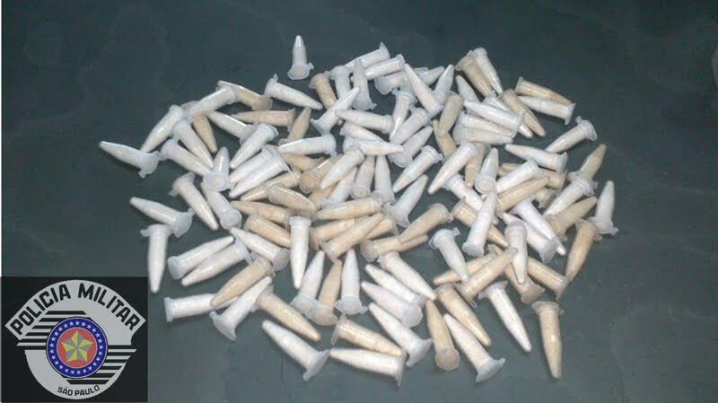 Verificando o conteúdo da sacola, os PMs encontraram 116 eppendorfs contendo cocaína, já prontos para a venda, além de uma balança de precisão.