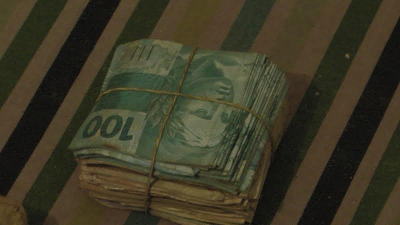 Em vistoria, os policiais localizaram em uma gaveta a quantia de seis mil novecentos e nove reais em notas diversas e mais setenta e um reais e vinte centavos em moedas. Também foram localizados um Tablet, um relógio marca Techno, quatorze (14) celulares e uma aliança.