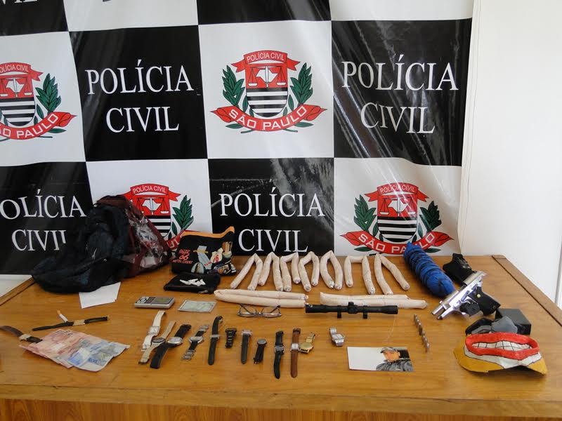 Após ser detido, Danilo nada quis falar aos policiais da DISE, que na sequência seguiram para outra casa na mesma rua, onde reside o desempregado e comparsa de Danilo, identificado por Raphael Calcavara, 18, que não se encontrava na moradia e com a entrada franqueada por uma familiar do mesmo os policiais civis também passaram a revistar a casa, quando vieram a localizar: 14 relógios e vários chips de celulares, a luneta de um rifle, cuja arma não foi encontrada no imóvel, uma pistola semi-automática Taurus, calibre 380 municiada com 9 cartuchos intactos, com a numeração raspada, além de mascaras, luneta, munições e 9 bastões cilíndricos flexíveis de “dinamite” que estavam escondidos dentro do guarda roupas e segundo os policiais o material seria suficiente para explodir várias casas do bairro.