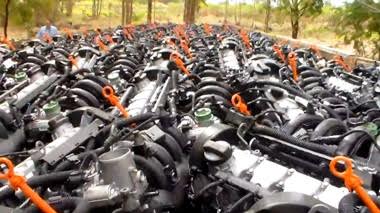 PM’s procederam uma revista e encontraram sob a lona 95 motores da marca Volkswagen, todos novos.