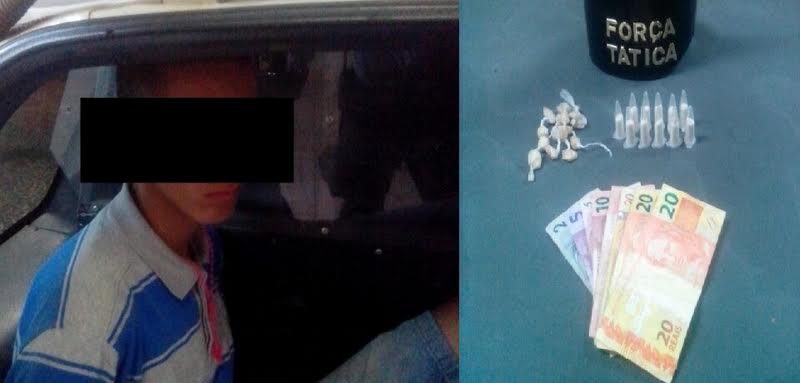 Um jovem de 18 identificado pelas iniciais L.A.I., morador no Jardim Santa Marta, foi preso por policiais da Força Tática em flagrante por tráfico de drogas por volta das 18 horas de quinta-feira (16/05). A abordagem aconteceu na rua Manoel Carlos, Vila Maria após ser visto em atitude suspeita descendo de um muro em uma esquina conhecida como ponto de tráfico. Foi localizado em sua boca um pino com cocaína, assim como uma certa quantia em dinheiro em notas fracionadas.