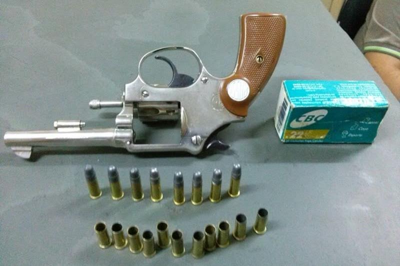 Em seu carro, um Chevette, o cabo Evangelista e o soldado Penteado, da PM local, encontraram escondido no console, entre os bancos, um revólver calibre 22 municiado.