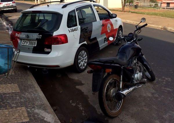 A moto foi recolhida e apresentada na Delegacia de Polícia, onde foi elaborado o Boletim de Ocorrência para providências.