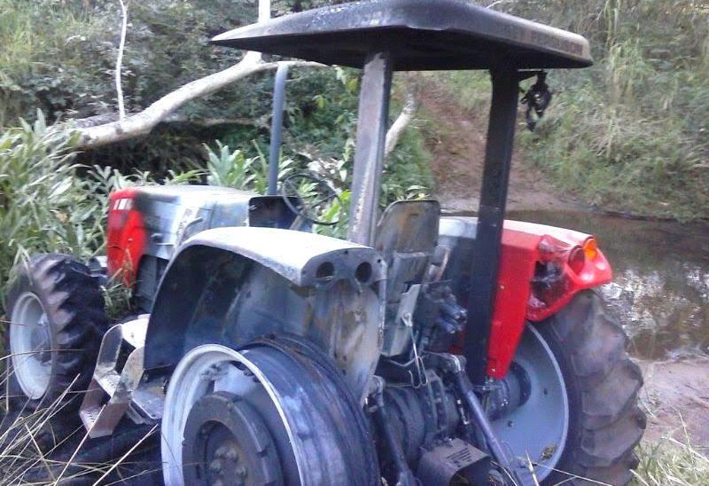 Trator roubado em Porto Ferreira foi localizado em área de mata na estrada do Lageado