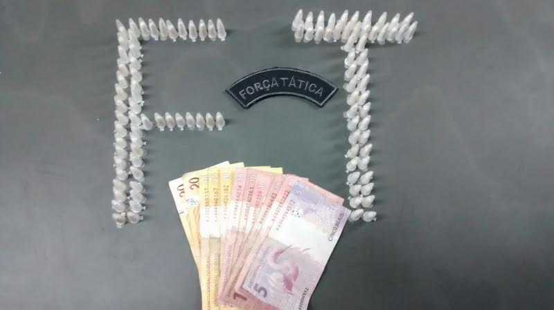 Em uma ocorrência os policiais da Força Tática foram informados que pessoas estariam praticando tráfico de drogas pelo bairro, e na referida rua abordaram um menor de 17 anos. Com ele foi encontrada uma certa quantia em dinheiro em notas fracionadas, e em buscas próximo a ele os policiais localizaram dois sacos plásticos, um contendo 50 eppendorfs com cocaína e outro com 48 eppendorfs, também com cocaína. Já no pé de uma mangueira os policias localizaram mais 05 eppendorfs, com o mesmo entorpecente. Perguntado a respeito, o menor disse que estava na pratica do Tráfico. O menor infrator recebeu voz de apreensão em flagrante, sendo detido e levado para a Delegacia de Policia para providências. Todo o entorpecente foi apreendido e o menor liberado para a sua mãe, que terá que apresentá-lo na Vara da Infância e Juventude.