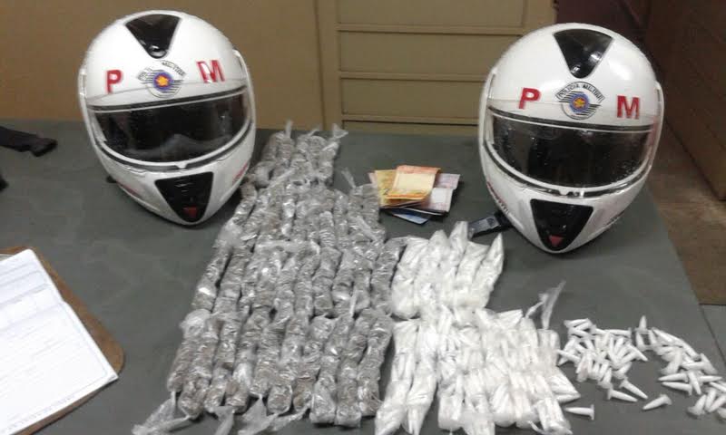 Com o mototaxista foi encontrada uma sacola contendo 406 (quatrocentos e seis) eppendorfs com cocaína e mais 453 (quatrocentos e cinquenta e três) porções de maconha, além de uma certa quantia em dinheiro. Já com o menor, morador na Vila Maria, foram localizados 9 (nove ) porções de maconha, 4 (quatro) eppendorfs com cocaína e uma certa quantia em dinheiro.