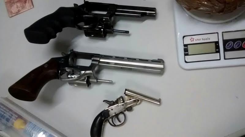 Já em outra casa, desta vez no Jardim Sergio Dornelles, os policiais localizaram cerca de 1quilo de cocaína, três armas de fogo, sendo uma arma calibre 357 de 6 polegadas, um revólver calibre 38 e uma garrucha calibre 22, além de munições de diversos calibres.