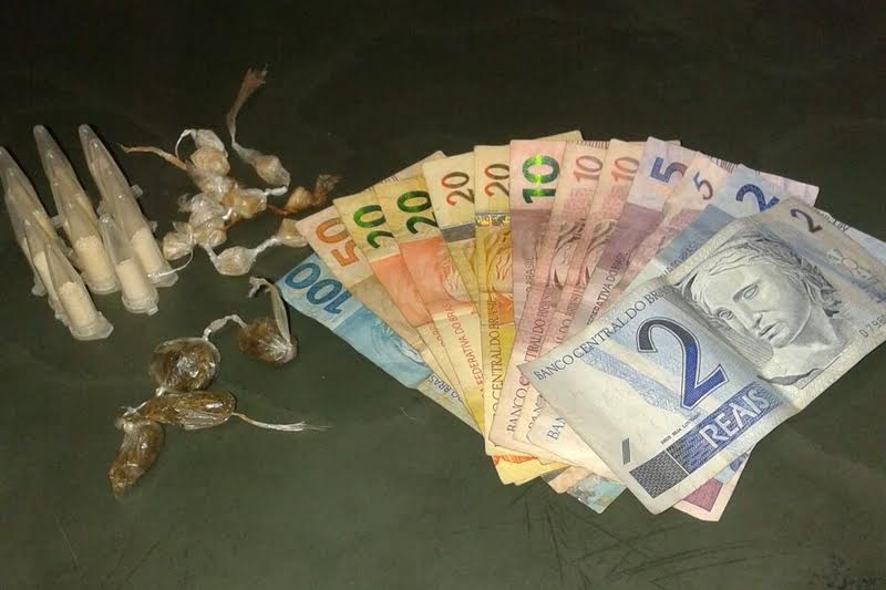 Um deles, ao perceber que seria abordado, jogou algumas pedras de crack ao solo. Em revista pessoal foram localizados com eles mais entorpecentes e uma certa quantia em dinheiro em notas fracionadas. Ao todo foram encontrados 12 pedras de crack, 14 pinos com cocaína e 04 trouxinhas com maconha. Os dois são moradores na Vila Nova.