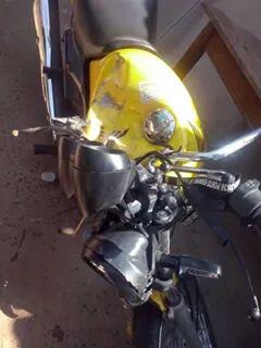 Os policiais se dirigiram até o KM 9 da citada estrada, na zona rural do município, e avistaram uma uma moto CG 150 de cor amarela, onde o condutor havia se chocado contra um muro de proteção e estava caído ao solo.