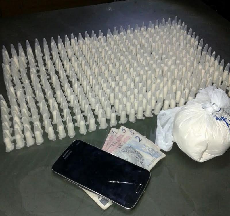 Os Polícias desembarcaram da viatura e correram atrás da dupla, realizando a abordagem na rua Antônio Tavares, Vila Maria. Ao verificarem o que tinha dentro do pacote plástico, os policiais localizaram cerca de 400 pinos com cocaína e mais uma quantia sem estar embalada, totalizando cerca de 911 gramas.