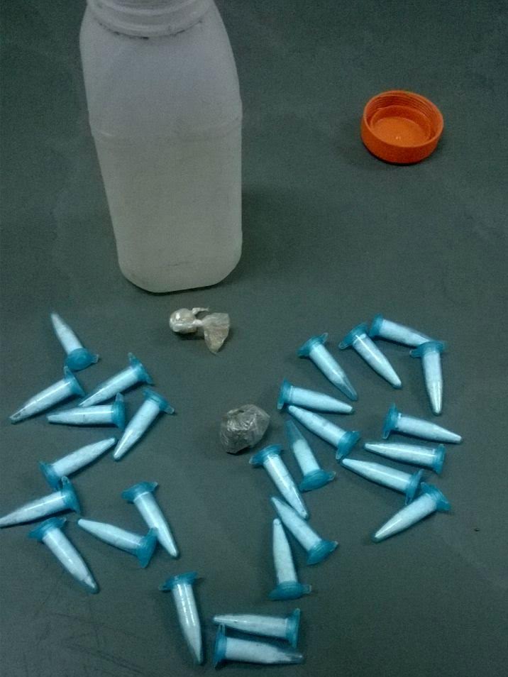 Ao verificar o que ele havia jogado no chão, os policiais localizaram 27 eppendorfs com cocaína, 01 porção de maconha e 02 pedras de crack.