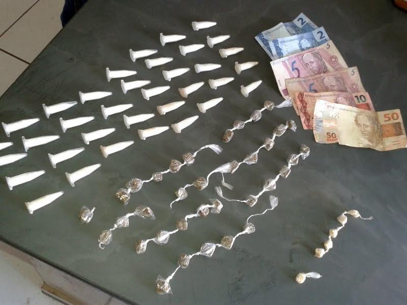 Durante patrulhamento preventivo pela Vila Maria, os policias avistaram o menor saindo de um terreno pulando o muro. Ele ao avistar a viatura pulou de volta do terreno para fugir. Rapidamente os Policiais saíram da viatura onde pularam o muro correndo atrás, onde com o apoio de mais uma viatura foi realizado o cerco e o menor foi abordado. No local onde ele estava foi localizado 35 eppendorfs com cocaína, 35 trouxinhas com maconha, 6 pedras de crack e R$ 74,00. Diante dos fatos o menor recebeu voz de apreensão, sendo levados para a delegacia de polícia, onde foi lavrado o boletim de ocorrência da polícia civil para demais providências.