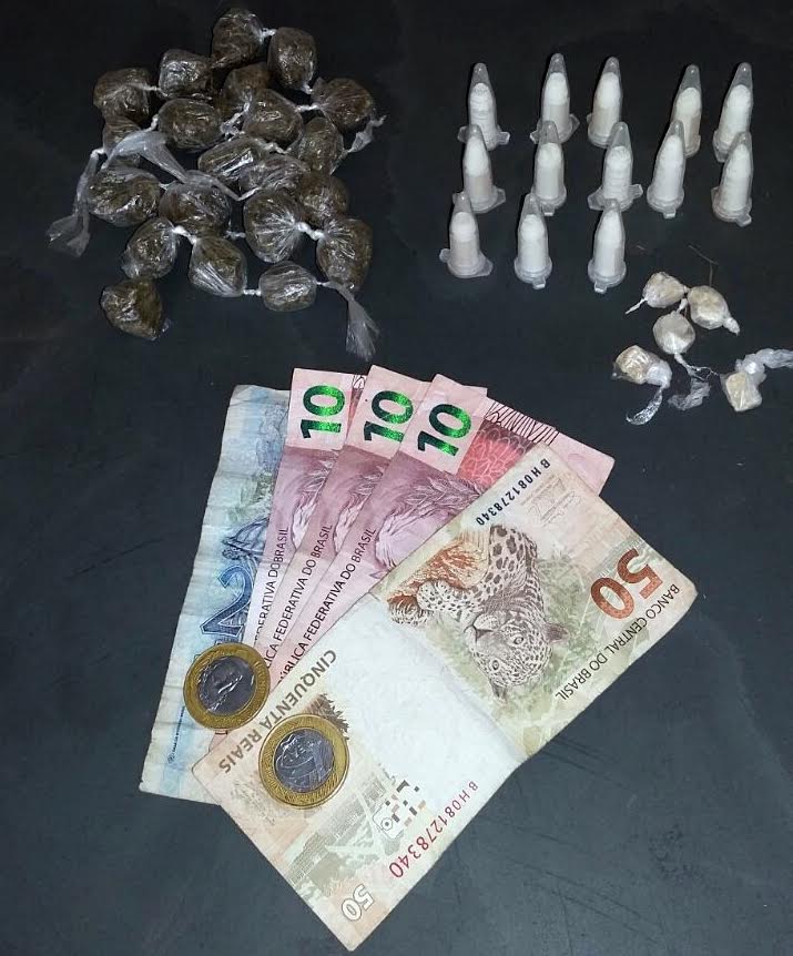 Os policias verificaram o local em que ele estava mexendo e localizaram 13 eppendorfs contendo cocaína, 21 trouxinhas com maconha e 05 pedras de crack.