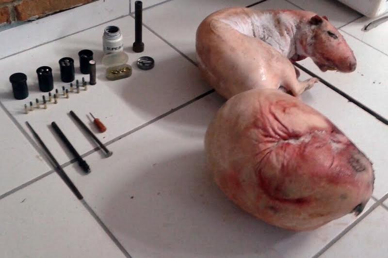 No Jardim Centenário foram encontrados duas armas, sendo uma calibre 22, potes com chumbo, potes com pólvora, sete cartuchos deflagrados, oito canos para o chamado “canhãozinho” e 63 cartuchos calibre 22 intactos.