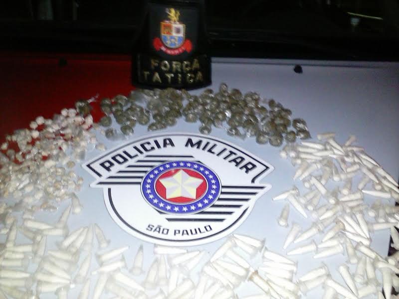 PM apreende 189 pinos com cocaína, 150 pedras de crack e 89 invólucros com maconha