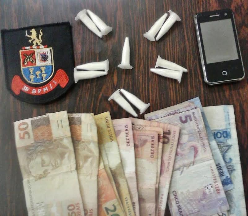 Em revista pessoal, sob suas vestes, os policiais localizaram R$ 260,00 em notas fracionadas e em buscas no local onde ele mexia foram encontrados 11 eppendorfs com cocaína.