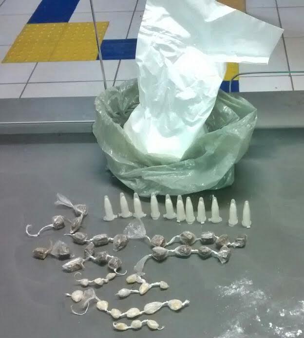Já no Jardim Centenário I, os policiais avistaram um balconista de 24 anos, morador no mesmo bairro, em atitude suspeita em um terreno baldio localizado na rua João Mendonça Salvador. O homem, ao perceber que seria abordado, dispensou alguma coisa ao solo. Rapidamente ele foi abordado, sendo verificado que ele havia jogado ao solo um pacote contendo um pó branco. Já em outra sacola foram localizados 11 pinos com cocaína, 21 trouxinhas com maconha e 16 pedras de crack.