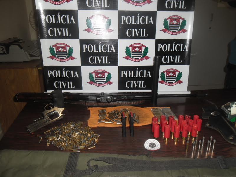 Durante as buscas os policias acabaram localizando: 17 cartuchos de calibre 12, 54 munições de calibre 38, 01 Revólver Calibre 357 de 6 tiros, 01 Rifle calibre 22 com dois carregadores e mira ótica, 09 cartuchos de calibre 357 e 174 cartuchos calibre 22.