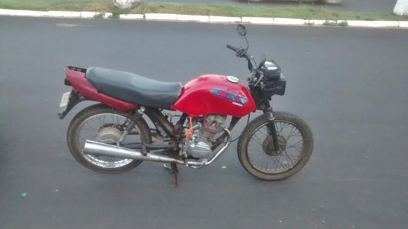 Durante patrulhamento realizado pela Polícia Militar no domingo (27) um menor foi avistado conduzindo uma moto CG 125 de cor vermelha com a placa de identificação parcialmente dobrada, o que chamou a atenção dos policiais, tendo em vista que este método é utilizados por motociclistas para efetuarem assaltos e não serem identificados através do emplacamento da moto.