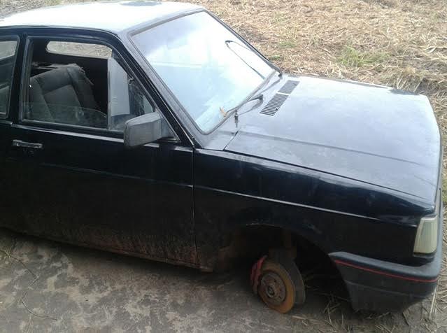 No local, os policiais constaram que se tratava de um VW/Gol, ano de fabricação 1989, de cor preta, placas BKP – 3042 de Porto Ferreira/SP, que se encontrava sem as quatro rodas e estepe, sem os dois bancos dianteiros, sem bateria e com alguns cabos do motor arrancados.